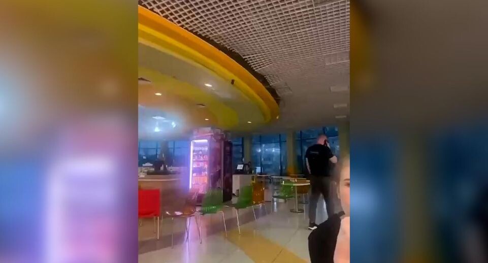 В распоряжении 360.ru оказалось видео из ТЦ. На опубликованных кадрах видно, что потолок остался без части облицовочных плит.