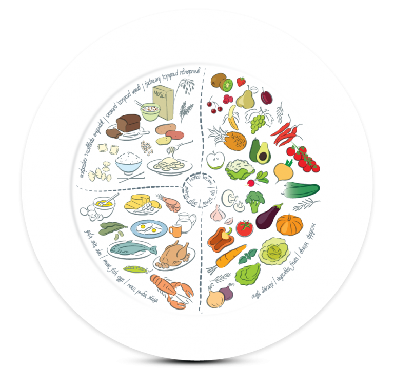 Основной принцип метода, это визуальное разделение тарелки на сектора, для обеспечения баланса между питательными веществами, которые потребляет человек.