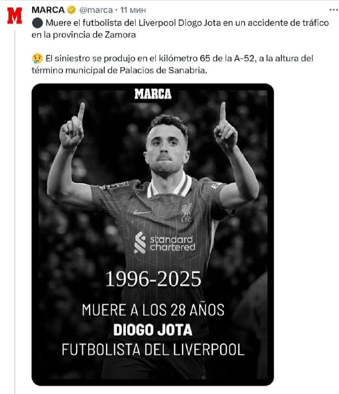 π ΠΠΈΠΎΠ³Ρ ΠΠΎΡΠ° ΠΏΠΎΠ³ΠΈΠ± Π² ΠΠ’Π Π² ΠΡΠΏΠ°Π½ΠΈΠΈ 28-Π»Π΅ΡΠ½ΠΈΠΉ Π½Π°ΠΏΠ°Π΄Π°ΡΡΠΈΠΉ Β«ΠΠΈΠ²Π΅ΡΠΏΡΠ»ΡΒ» ΠΈ ΡΠ±ΠΎΡΠ½ΠΎΠΉ ΠΠΎΡΡΡΠ³Π°Π»ΠΈΠΈ ΠΠΈΠΎΠ³Ρ ΠΠΎΡΠ° ΠΏΠΎΠ³ΠΈΠ± Π² Π°Π²ΡΠΎΠΊΠ°ΡΠ°ΡΡΡΠΎΡΠ΅ Π² ΠΈΡΠΏΠ°Π½ΡΠΊΠΎΠΉ ΠΏΡΠΎΠ²ΠΈΠ½ΡΠΈΠΈ Π‘Π°ΠΌΠΎΡΠ°. ΠΠΌΠ΅ΡΡΠ΅ Ρ Π½ΠΈΠΌ Π² ΠΌΠ°ΡΠΈΠ½Π΅ Π±ΡΠ» Π΅Π³ΠΎ ΠΌΠ»Π°Π΄ΡΠΈΠΉ Π±ΡΠ°Ρ ΠΠ½Π΄ΡΠ΅ β ΠΎΠ±Π° ΡΠΊΠΎΠ½ΡΠ°Π»ΠΈΡΡ Π½Π° ΠΌΠ΅ΡΡΠ΅. ΠΠΎ Π΄Π°Π½Π½ΡΠΌ Π‘ΠΠ, Π°Π²ΡΠΎ Π²ΡΠ»Π΅ΡΠ΅Π»ΠΎ Ρ ΡΡΠ°ΡΡΡ Aβ52 ΠΈ Π·Π°Π³ΠΎΡΠ΅Π»ΠΎΡΡ. ΠΠΎΡΠ° Π½Π΅Π΄Π°Π²Π½ΠΎ ΠΆΠ΅Π½ΠΈΠ»ΡΡ, Ρ Π½Π΅Π³ΠΎ ΠΎΡΡΠ°Π»ΠΈΡΡ ΡΡΠΎΠ΅ Π΄Π΅ΡΠ΅ΠΉ. π² ΠΠΎΠ΄ΠΏΠΈΡΠΈΡΡ Π½Π° Π’Π΅Π»Π΅Π³Π° Online