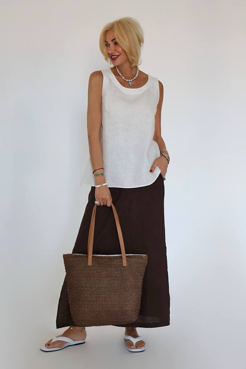 К нашим льняным костюмам, которых в ассортименте немало, мы добавили отличное дополнение для создания удобного, простого, но при этом