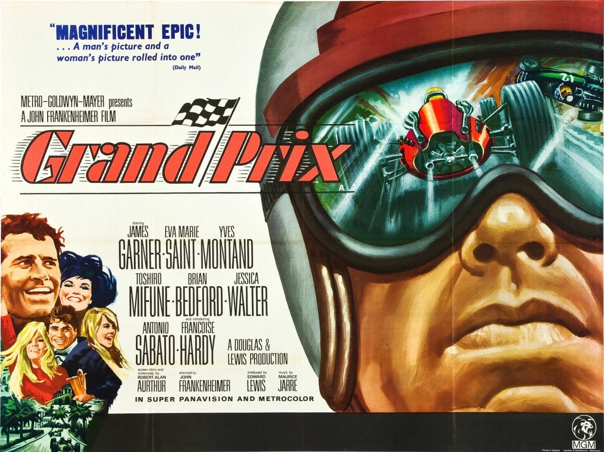 По сути, гоночное кино обошлось без фальстарта. Джон Франкенхаймер еще в 1966 году задал такую высокую техническую планку, что каждый фильм об автоспорте создается с неизбежной оглядкой на «Гран-при». Сюжет – многофигурная мозаика с четырьмя героями. Но личная драма гонщиков – не самое сильное место картины. Главное, что у нее под капотом. «Гран-при» изощрен и технически, и монтажно. Съемка велась прямо на болидах, не сбавляя скорости – особенно захватывают эпизоды от первого лица. Многое решил вольный джазовый монтаж – калейдоскоп из кадров, где сочетаются короткие и длинные сцены, полиэкран, детали, а еще Франкенхаймер мастерски переключается от паузы к действию. Отдельного внимания заслуживает полиэкран – «Гран-при» использует его по максимуму, пытаясь выйти из ограничений повседневного человеческого восприятия. И это только в первые минут 15 хронометража. Можно даже сказать, что кино придумано, чтобы фиксировать гонки: скорость, симультанность движения, детали, уловимые только боле