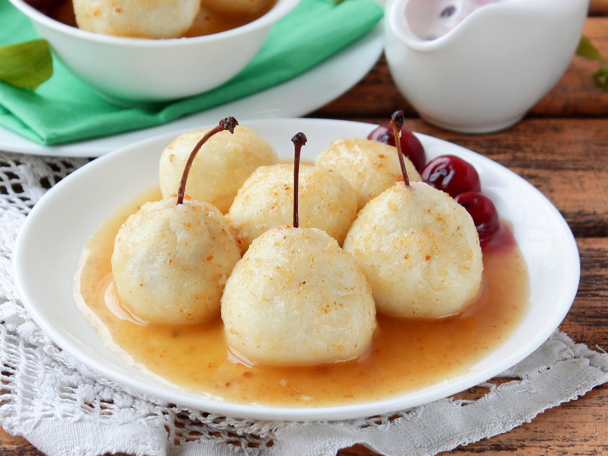 Простой, тёплый, удобный завтрак, который мы очень любим готовить в сезон вишни. Кнедлики получаются очень нежные, как зефир, но держат форму. Внутри – сочная вишня с косточкой, чтобы вкус был ярким, не размазанным. А сверху – золотистая панировка из масла, мёда и сухарей, та самая, которую невозможно не доесть с тарелки ложкой. Готовим вечером, замораживаем, а утром раз-два и готово! Полный список ингредиентов – в конце⤵ Берём 200 г жирного творога. Добавляем 2 столовые ложки манной крупы с горкой и 2–3 ложки сахара – смотрим по вкусу, но не перебарщиваем. Всё тщательно растираем ложкой до однородной массы и оставляем на 15–20 минут – за это время манка разбухнет, масса станет пластичной. После того как масса «созреет», выкладываем её на присыпанную мукой поверхность и скатываем в валик – он не должен липнуть, но и не должен быть забит мукой. Режем на равные кусочки. Формируем лепёшки, в центр каждой кладём по вишне с косточкой – не чистим, иначе потечёт. Аккуратно защипываем края, фо