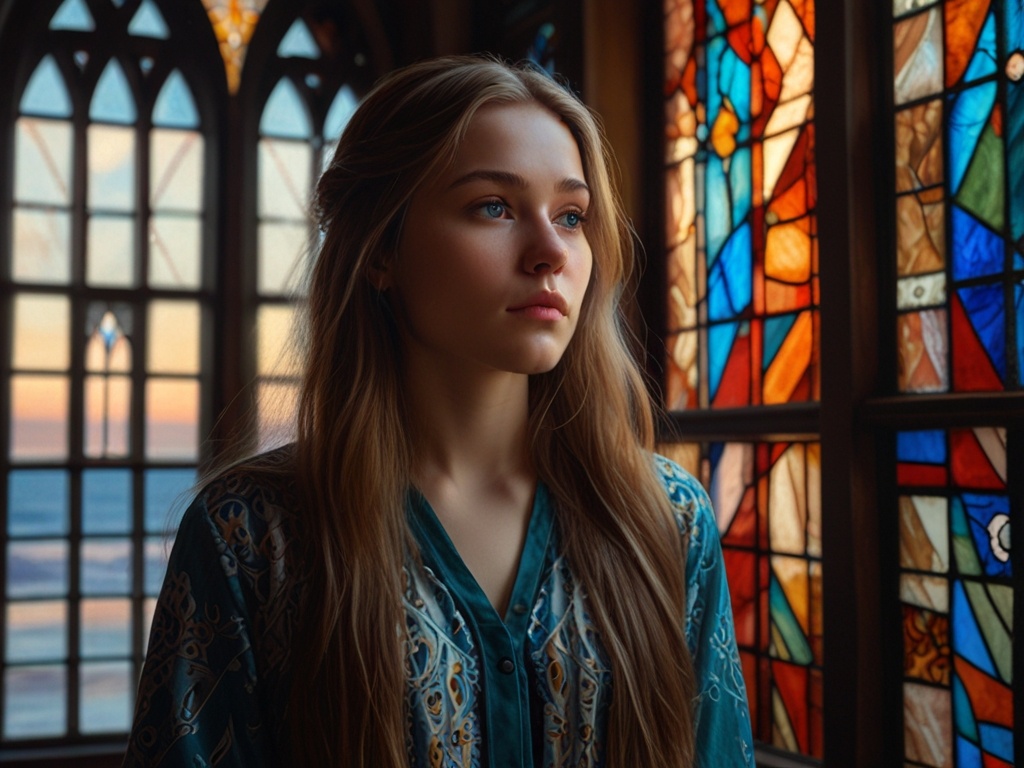 Солнце лилось сквозь витражное окно, окрашивая пылинки в воздухе в золотистый цвет. Эмилия, в своем кремовом платье, казалась частью этой картины, сотканной из света и нежности. Она стояла у окна, вглядываясь в далекий горизонт, где море сливалось с небом. Ее тонкие плечи чуть вздрагивали, выдавая волнение, которое она старалась скрыть.