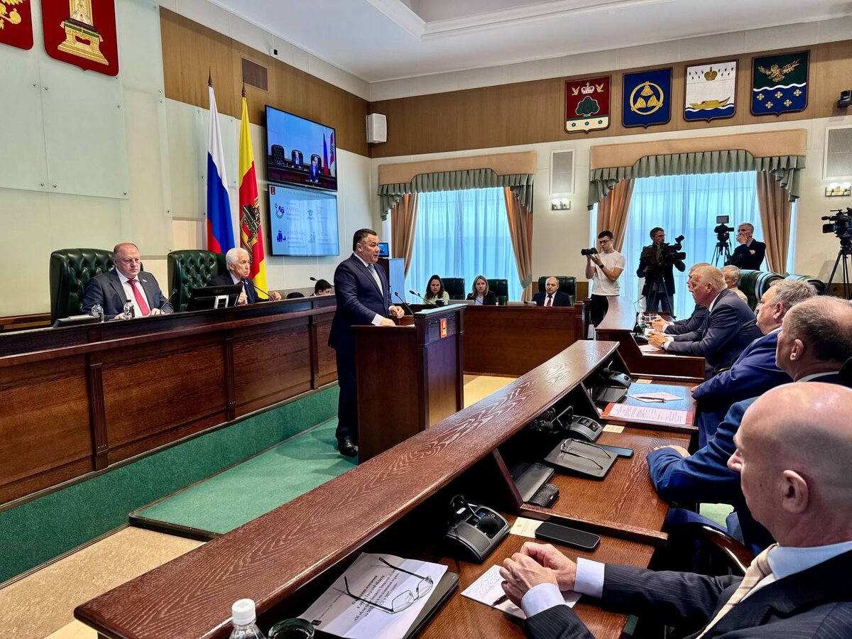 Губернатор Игорь Руденя в Законодательном Собрании Тверской области представляет отчёт о результатах деятельности регионального