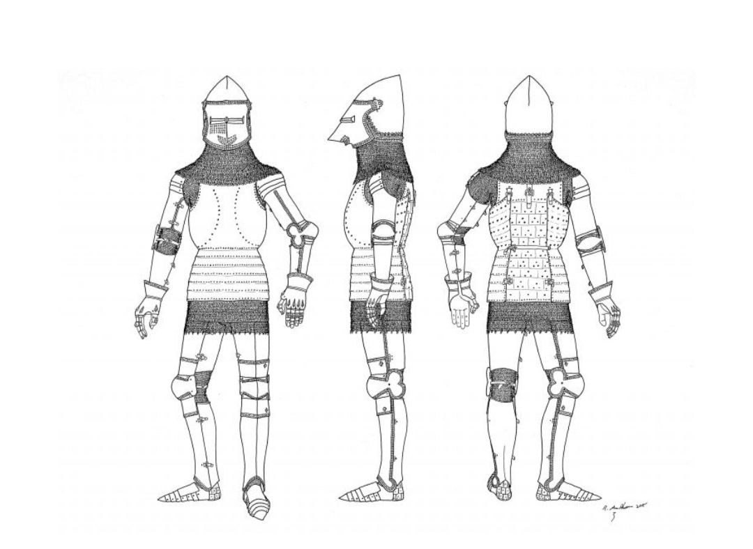 #ДоспехиДвери Ну и раз уж мне на глаза попалась статья с картинками вы можете оценить разницу, сравнить схему английского доспеха 1400 - 1410 года (сверху) и 1430 - 1445 (снизу). Лично меня в этом всём сильно удивило наличие полной задней створки на бедре, я считал, что в таком комплекте будет не удобно сидеть на лошади, но видно англичане как то справлялись. #ПозднееСредневековьеДвери