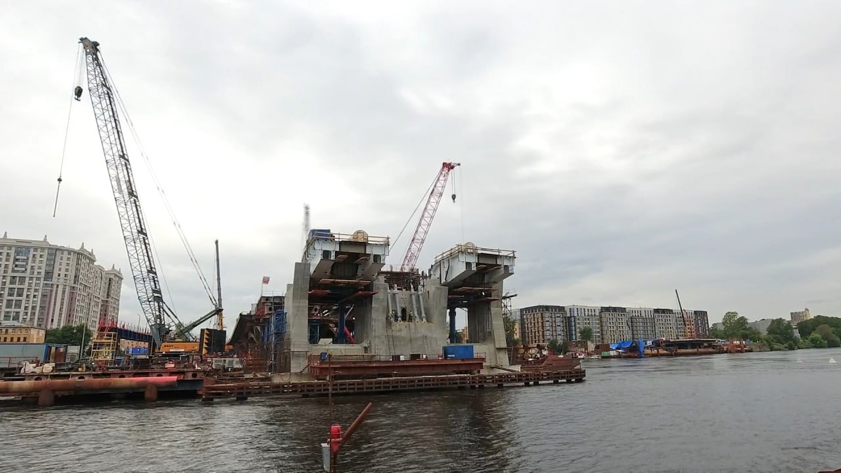 Каждое устройство весит порядка 6 тонн. Их монтировали с помощью крана, установленного на барже. Они способны выдержать расчетную нагрузку 360 тонн для разводки и 300 тонн для сведения разводного пролета. На опоре заранее забетонировали элементы опорных узлов гидроцилиндров и смонтированы противовесные блоки. Впоследствии они уравновесят пролетное строение и обеспечат функционирование «крыльев» моста.