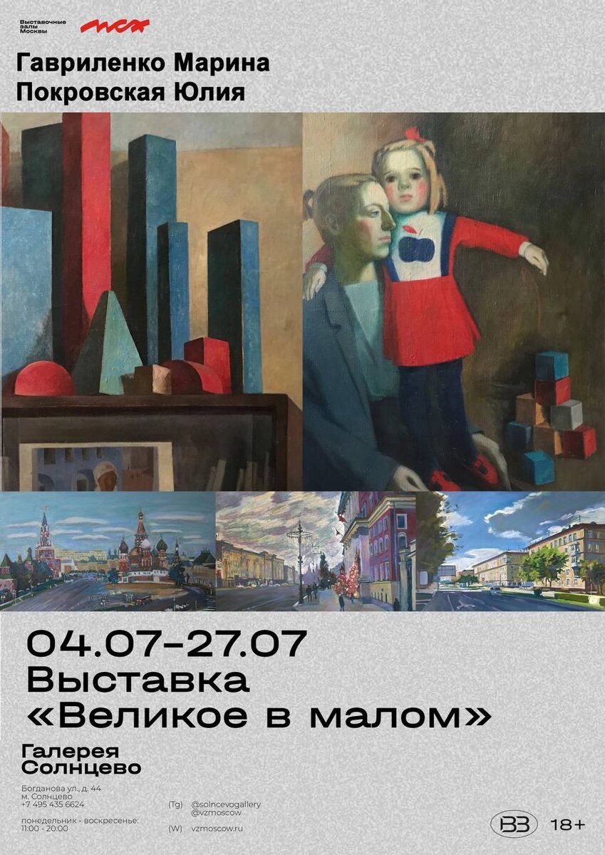4 июля в Галерее Солнцево Объединения «Выставочные залы Москвы» откроется выставка «Великое в малом», в которой представлены живописные
