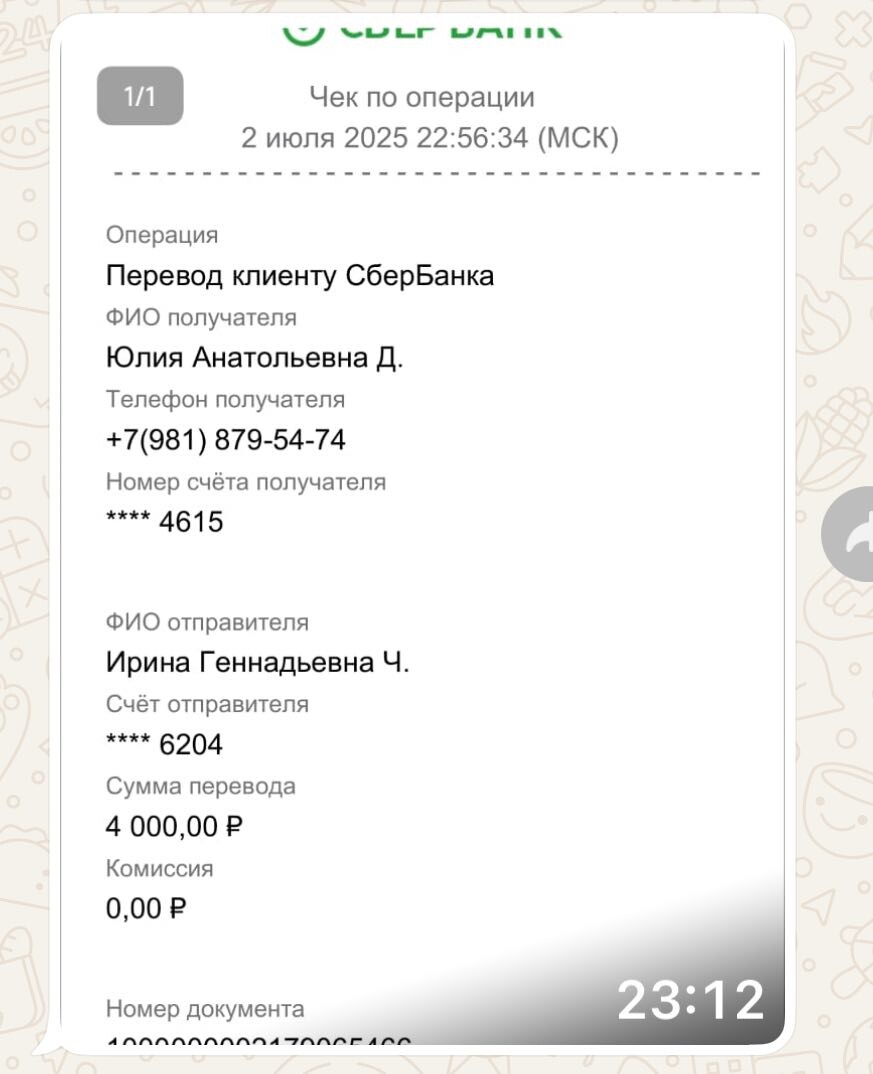 Перевели Юли долг за Мусю, УЗИ, прием, анализы