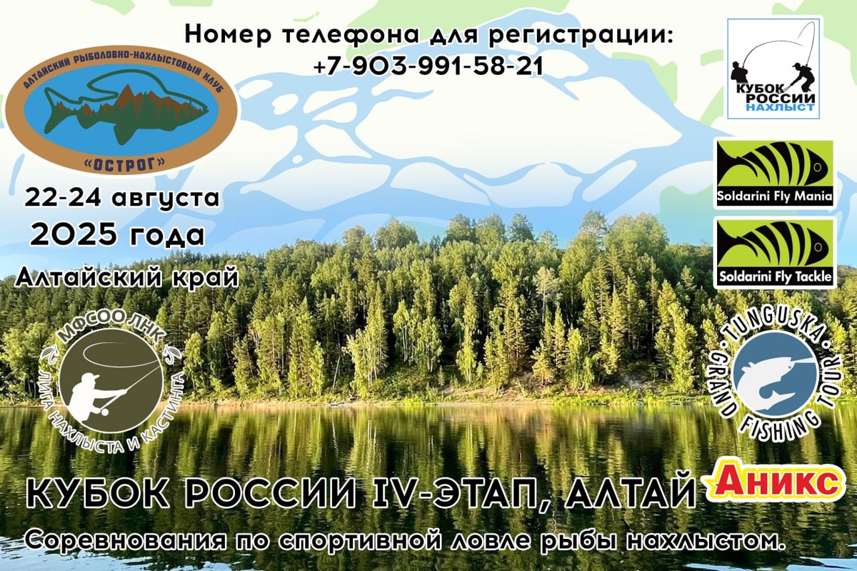 Приглашаем Вас принять участие в IV этапе Кубка России по спортивной ловле рыбы нахлыстом. Этап пройдет на границе Республики Алтай и Алтайского края, на одной из самых крупных рек региона - на р. Бия. Соревнования пройдут с 22 по 24 августа, будут включать в себя 4 тура. Титульный спонсор - компания «Большое рыболовное путешествие» Tunguska Tour. Приз за первое место в личном зачете - рыболовный тур на р.Бахта, Красноярский край. Первые три места в личном и командном зачете, а так же за самую большую рыбу, будут награждены призами от спонсоров Soldarini Fly Tackle и Soldarini Fly Mania. Этап проходит благодаря поддержке Торгового двора «Аникс» - для людей на своей Земле. Приезжайте насладиться первозданной природой предгорья Алтая и проявить свое мастерство в борьбе за главный приз! Ссылка на положение, правила и регистрацию.