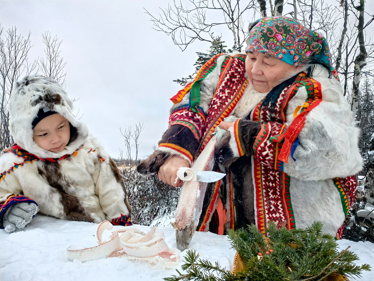 Ямал... В этом царстве льда и снега живет женщина – сильная, мудрая и невероятно стойкая. Жизнь женщины в тундре – это симфония, состоящая из тяжелого труда, заботы о семье и глубокой связи с природой. Её день начинается задолго до того, как первые лучи солнца окрасят снежный горизонт. Нужно развести огонь, согреть чум, приготовить еду для семьи и собак, которые являются неотъемлемой частью жизни оленевода. Ее утро начинается с заботы. Огонь – это жизнь в тундре, он дарит тепло, возможность приготовить еду и согреть воду. Женщина следит за тем, чтобы в чуме всегда было тепло, и чтобы дети проснулись в комфорте. Она знает, что от её заботы зависит здоровье и благополучие всей семьи. Руки женщины тундры – золотые. Они умело работают с кожей, мехом и сухожилиями, создавая теплую и практичную одежду, обувь и предметы быта. Одежда из оленьей шкуры не только согревает в лютые морозы, но и является важным символом культуры. Каждая деталь, каждый стежок – это дань уважения традициям предков. Ж
