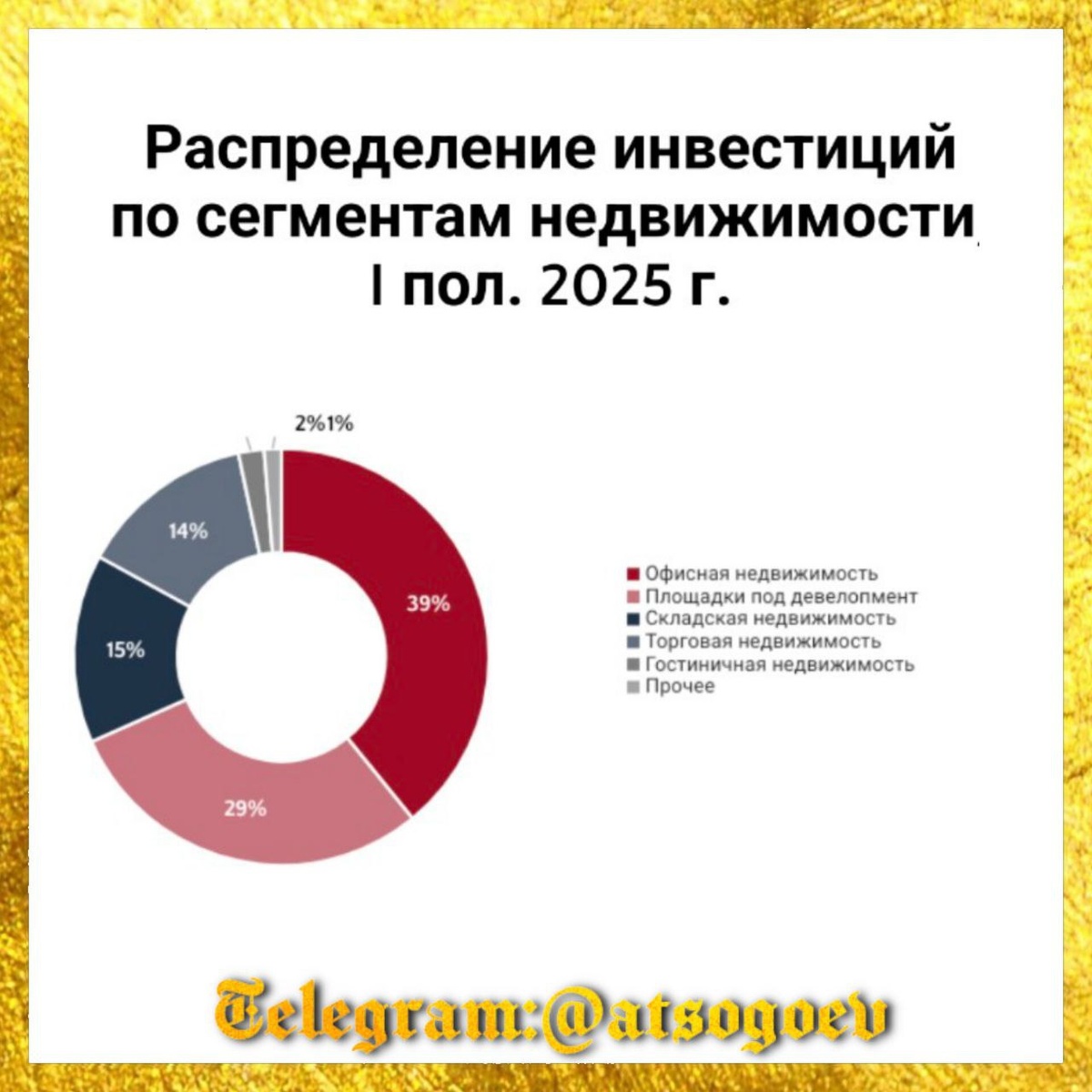 🏢 Офисная недвижимость стала лидером по объему привлеченных инвестиций — ₽136 млрд, сместив с первого места земельные участки. Несмотря на высокую ключевую ставку в 20% (недавно снижена с 21%), спрос на качественные офисы в центральных локациях сохраняется. Среди ключевых сделок — Центральный телеграф, AFI2B и «Легион I».