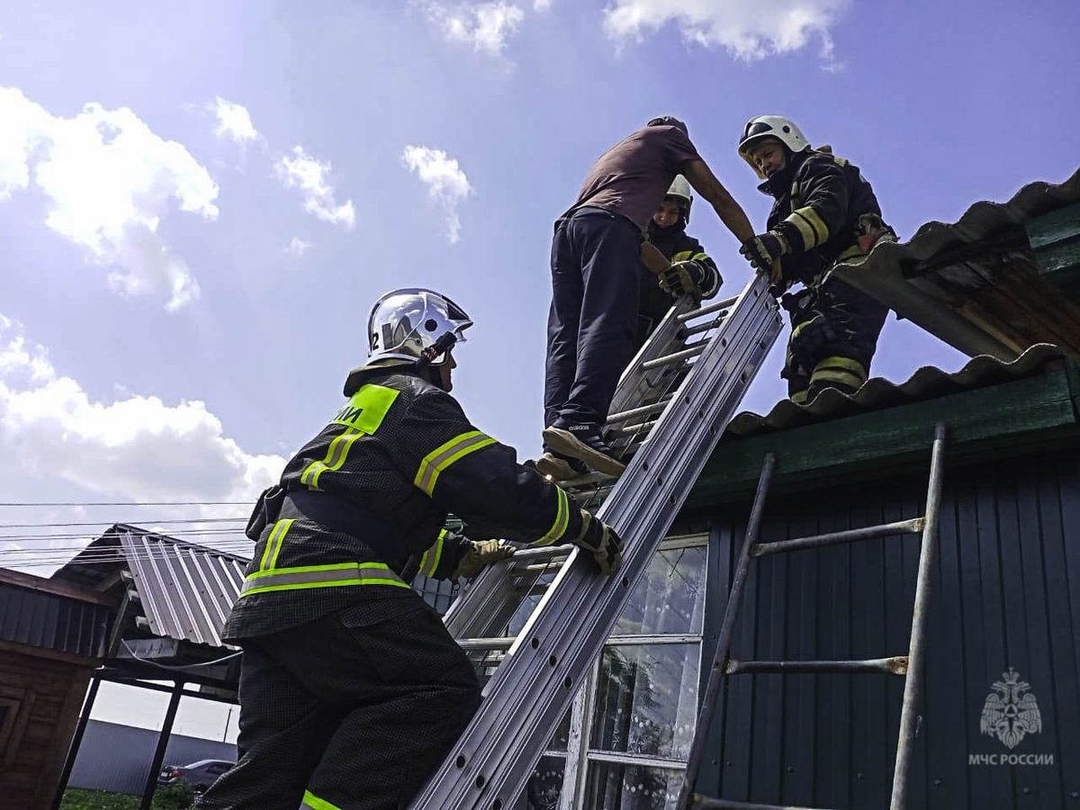 На пульт Называевской пожарной части поступило сообщение о мужчине, который странно себя вел на крыше частного дома. Очевидцы заметили, что он ходит по крыше и угрожает спрыгнуть. Полиция и скорая помощь прибыли на место, но мужчина не поддавался уговорам спуститься. Спасатели развернули лестницу и поднялись к нему. «Перед нами стоял мужчина лет 35, успокаивать нам его не пришлось. Он улыбался и говорил, что ничего не помнит. Послушно проследовал с нами на лестницу и спустился вниз», — сообщил заместитель начальника 52 ПСЧ Кирилл Степченко. В итоге мужчина, оказавшийся работником, нанятым для ремонта крыши, отказался от помощи врачей и проследовал на беседу с сотрудниками полиции. Фото: МЧС Омской области