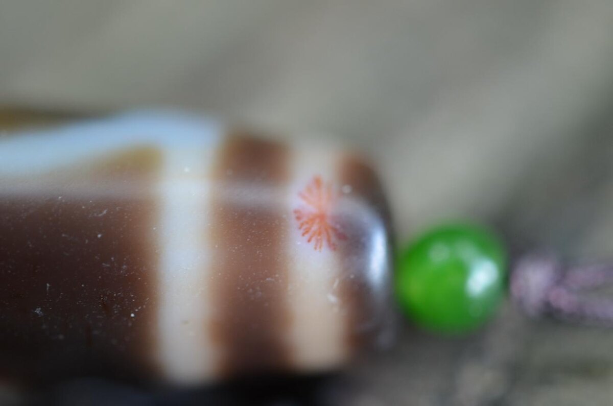 Бусина Дзи ЗЕЛЕНАЯ ТАРА с благородными следами Мудрости и времени.