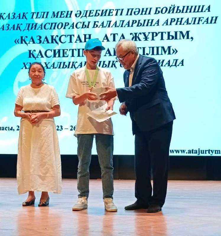 Омичи привезли серебро и бронзу с Международной олимпиады по казахскому языку и литературе Омскую область представили победители региональной олимпиады по казахскому языку и литературе: Чингис Айтимов, Марсел Бекимов, Аль-Мирей Бокбаева и Альбина Каирова. Олимпиада проходила в три этапа, была нацелена на выявление и поддержку одаренных детей и талантливой молодежи зарубежной казахской диаспоры для развития у них познавательного интереса к изучению родного (казахского) языка и литературы. По решению жюри наши школьники: Марсел Бекимов занял второе место, Аль-Мирей Бокбаева Чигис Айтимов и Альбина Каирова стали бронзовыми призерами. Ребята поблагодарили Министерство просвещения Республики Казахстан, Министерство образования Омской области и институт развития образования Омской области за предоставленную возможность выступить на олимпиаде. Поздравляем!!!