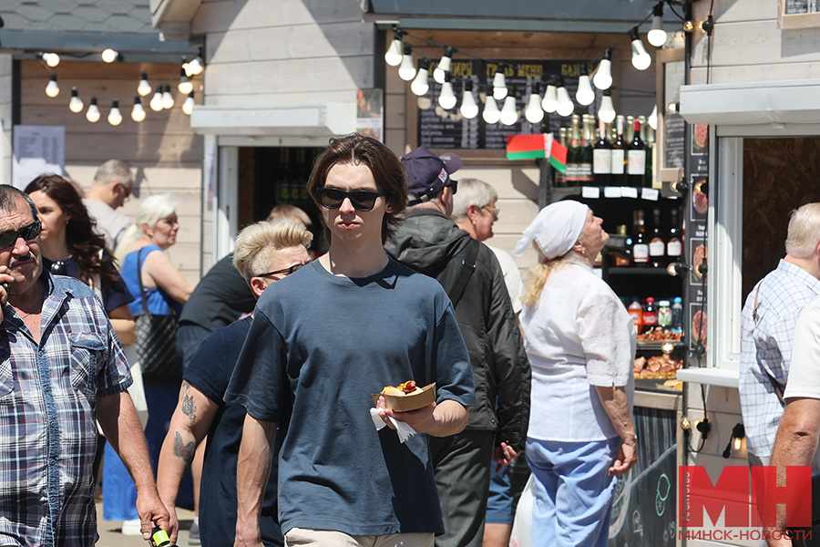 Праздничная ярмарка, посвященная Дню Независимости, развернулась у Дворца спорта в Минске 3 июля, передает корреспондент агентства «Минск-Новости». В ярмарке принимают участие различные торговые организации столицы. Здесь можно найти все: от свежих продуктов и сувениров до гастрономических деликатесов, приготовленных прямо на глазах у посетителей. Ароматы драников, шашлыка, колбасок, куриных крылышек гриль, плова и блинов приятно манят и не оставляют равнодушными даже самых требовательных гурманов. — Я пришел с семьей, и нам очень нравится, что все готовится прямо здесь, на месте, — поделился минчанин Андрей. — Это добавляет ярмарке особый колорит, а еда невероятно вкусная. Кроме горячих блюд, на ярмарке продают мороженое, квас и напитки отечественных производителей, которые особенно востребованы в жаркую погоду. — Обожаю такие мероприятия, — отметила жительница столицы Марина. — Можно и вкусно поесть, и просто приятно провести время на свежем воздухе. Очень здорово, что праздник отмеч