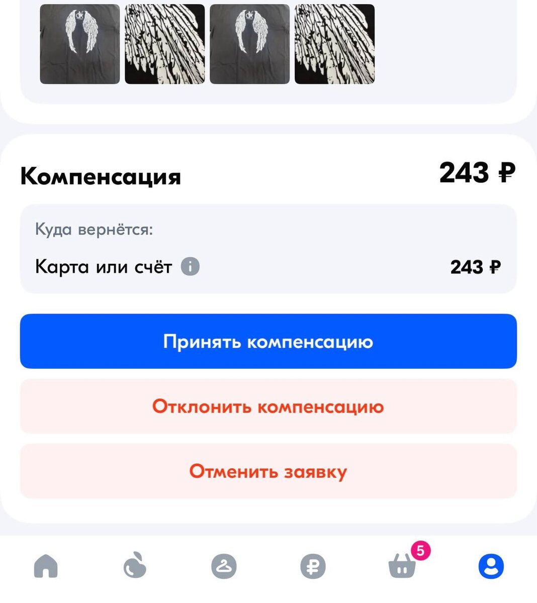 Но ответ мне пришел в тот же день и мне предлагали компенсацию 243 ₽ без возврата товара.