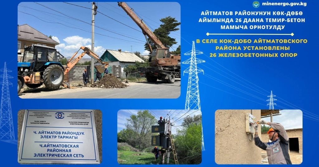 🔌 Талас облусунун Чолпонбай Айтматов районундагы Көк-Дөбө айылында энергетика министрлиги тарабынан жүргүзүлүп жаткан реформалардын алкагында 26 жаңы темир-бетон мамылар орнотулду.