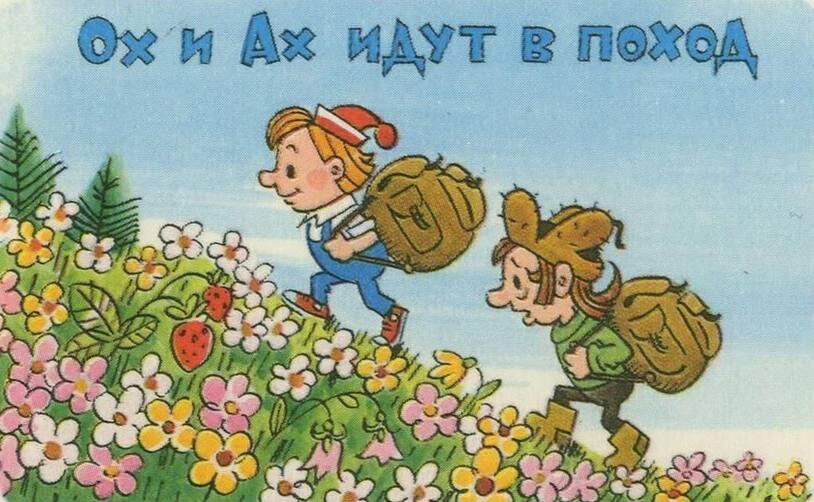 Ох - типичный пессимист, ворчун и скептик. Даже простые дела, как гора непосильной задачи. Ах - напротив, оптимист, весёлый и проворный. Он улыбается солнцу и делает всё с энтузиазмом. Их знакомство, это история соседей, олицетворяющих два взгляда на жизнь. «Ох и Ах» (1975): Ах берётся за всё — дрова, уборка, даже с облаками играет. Ох пытается помочь, но у него всё валится из рук. Тогда Ах и другие: Ой, Эх, Ай-ай-ай, приходят на помощь: убирают дом и “перевоспитывают” Оха, показывая, что он может быть счастлив и доволен жизнью. Все вместе приводят его в порядок, и Ох впервые улыбается. Ох излечился от пессимизма. «Ох и Ах идут в поход» (1977): Ах и дед Ай-ай-ай увлекают Оха в поход. Падения, козы и природа превращают пессимиста в бодрого участника, который начинает получать удовольствие от прогулки с друзьями. Финал: с цветами в руках для соседей и теплым в сердцем. Разная мировоззренческая палитра, это не случайность, а художественный приём. Ах - это жизненная энергия и вера в се