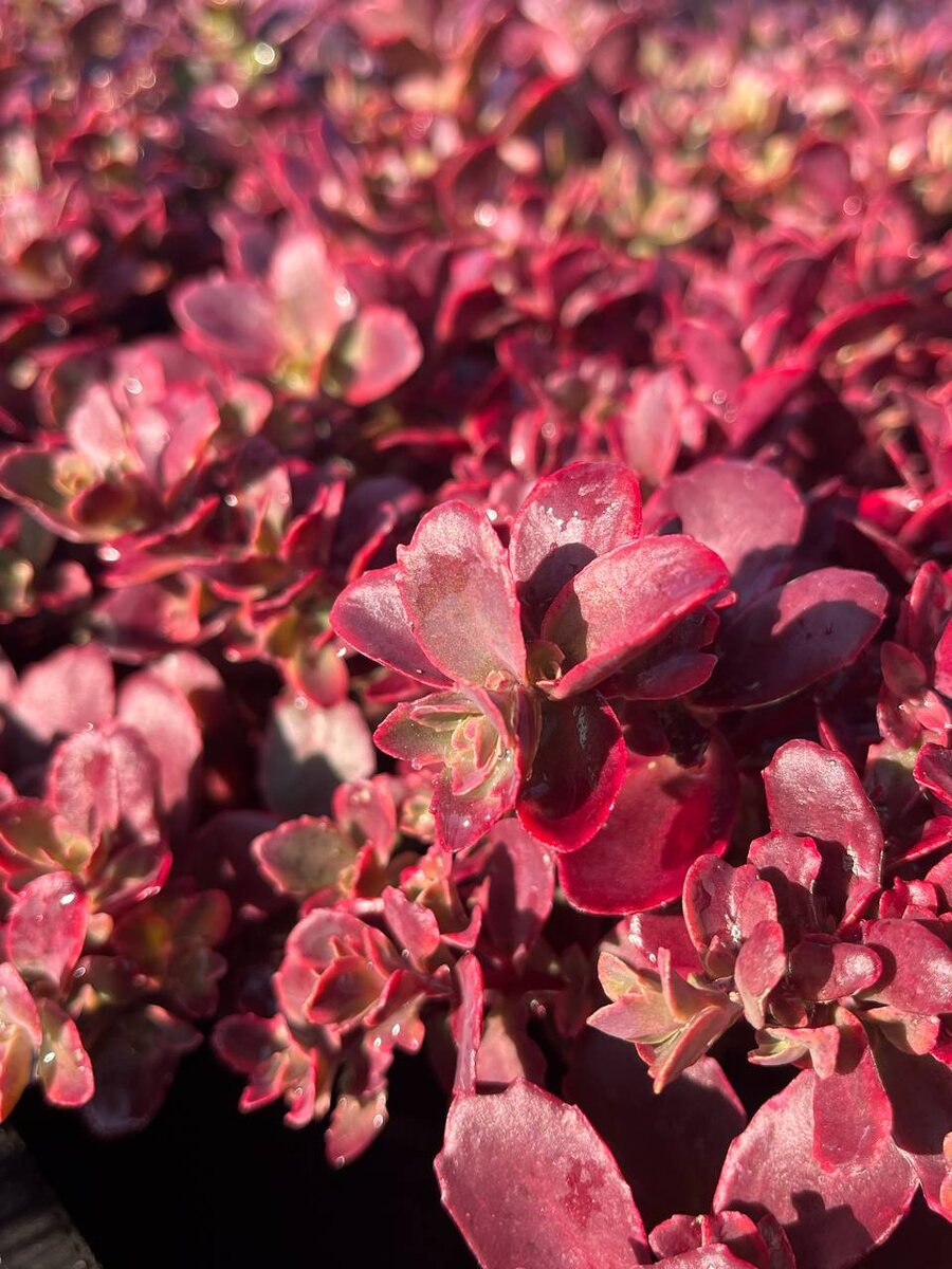 Sedum SunSparkler ‘Firecracker’ — компактный почвопокровный многолетник с бордово-красной листвой и тёмно-розовыми соцветиями, которые