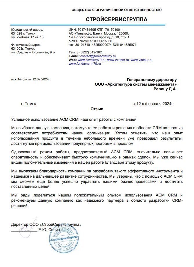 Модуль «АСМ CRM» для них это про порядок, контроль и скорость. Рабочая система, в которой всё на своих местах.