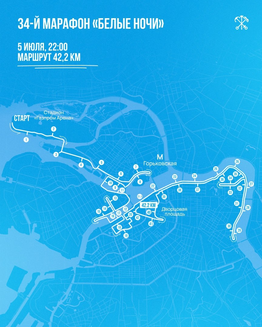 Из-за марафона «Белые ночи» в субботу, 5 июля, закроют движение в центре Петербурга. В частности, проехать нельзя будет по Суворовской, Исаакиевской и Сенатской площадям, Дворцовой набережной и набережной Кутузова, на участках Гороховой, Большой Морской, Шпалерной улиц, по Южной дороге и другим улицам города. Ограничения продлятся до утра воскресенья. Любители спорта примут участие в забегах на дистанциях 42,2 км и 10 км. Схема: правительство Петербурга/gov.spb.ru Подпишись на Город+