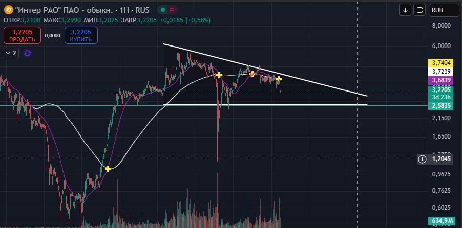 $IRAO Вы вообще в курсе, что цена шесть лет шла практически без откатов: с 2014-го до 2020 г. – это видно на недельном тайме. ( вот откуда столько оптимизма у многих насчет этой компании)😆 🕯А также на недельном тайме видно поджатие к уровню поддержки 2,6050. ➡️ Если этот уровень будет пробит и цена закрепится, тогда мы увидим падение, основная задача цены будет перекрыть фрактал предыдущей красной свечи.. 🔽При закреплении ниже поддержки увидим падения до 1,3. 👀Я знаю что многие инвесторы вкладывают большие надежды в интер РАО, но я бы не была так наивна самоуверенна. НЕ ИИР #теханализ #инвестиции #теханализ #ирао