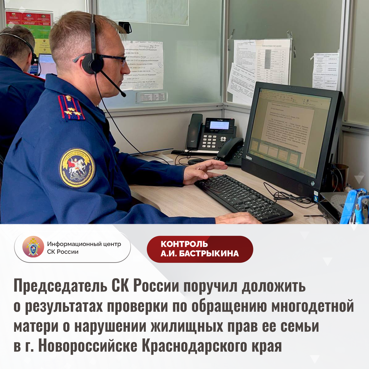 Председатель СК России поручил доложить о результатах проверки по обращению многодетной матери о нарушении жилищных прав ее семьи в г. Новороссийске Краснодарского края
