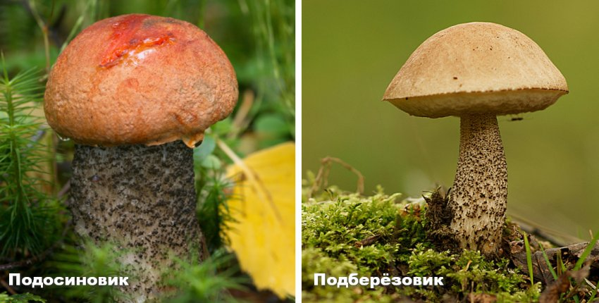 Подберёзовики и подосиновики — близкие родственники из семейства Болетовые рода лекцинум (обабок) (лат. Leccinum). Эти грибы получили свои названия благодаря местам произрастания: подберёзовик селится возле берёз, а подосиновик — рядом с осинами. Подберёзовик обыкновенный имеет: Подосиновик отличается: Подберёзовики встречаются: Подосиновики предпочитают: Период плодоношения: с конца мая до поздней осени. Пик сбора приходится на август-сентябрь. Пищевая ценность: Способы приготовления: