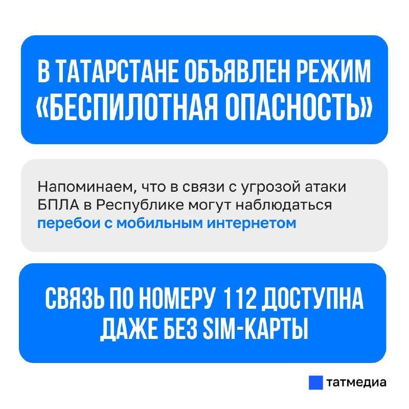 ❗️🛩 На территории Татарстана второй раз за день ввели режим «беспилотная опасность»