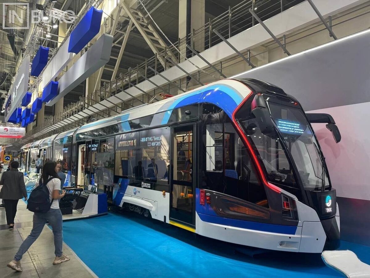 Пятисекционный трамвай «Воевода» (71-952) от «ПК Транспортные системы» на выставке ИННОПРОМ-2025