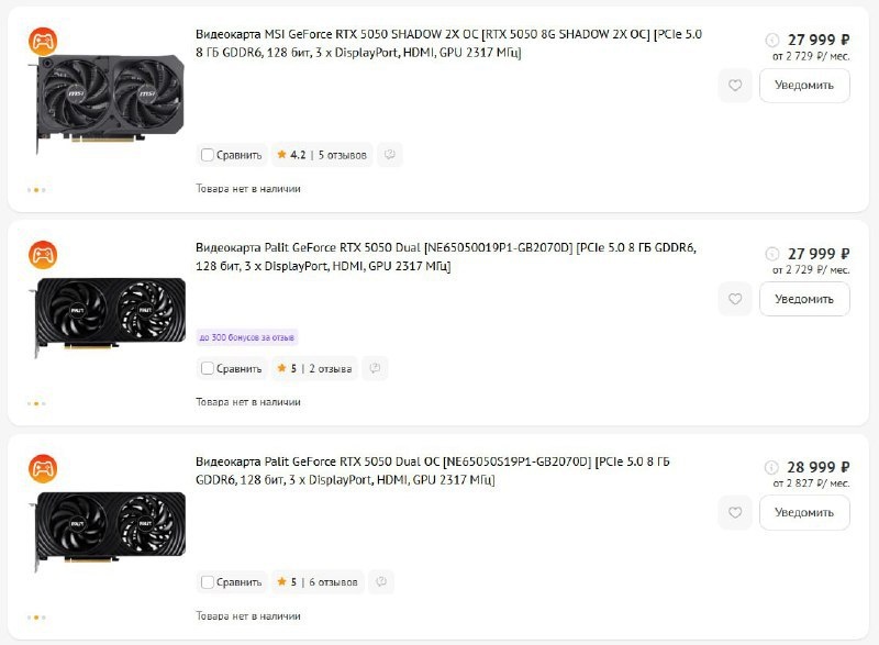 ⚡️ RTX 5050 ворвалась на российский рынок — старт с 28 тысяч рублей