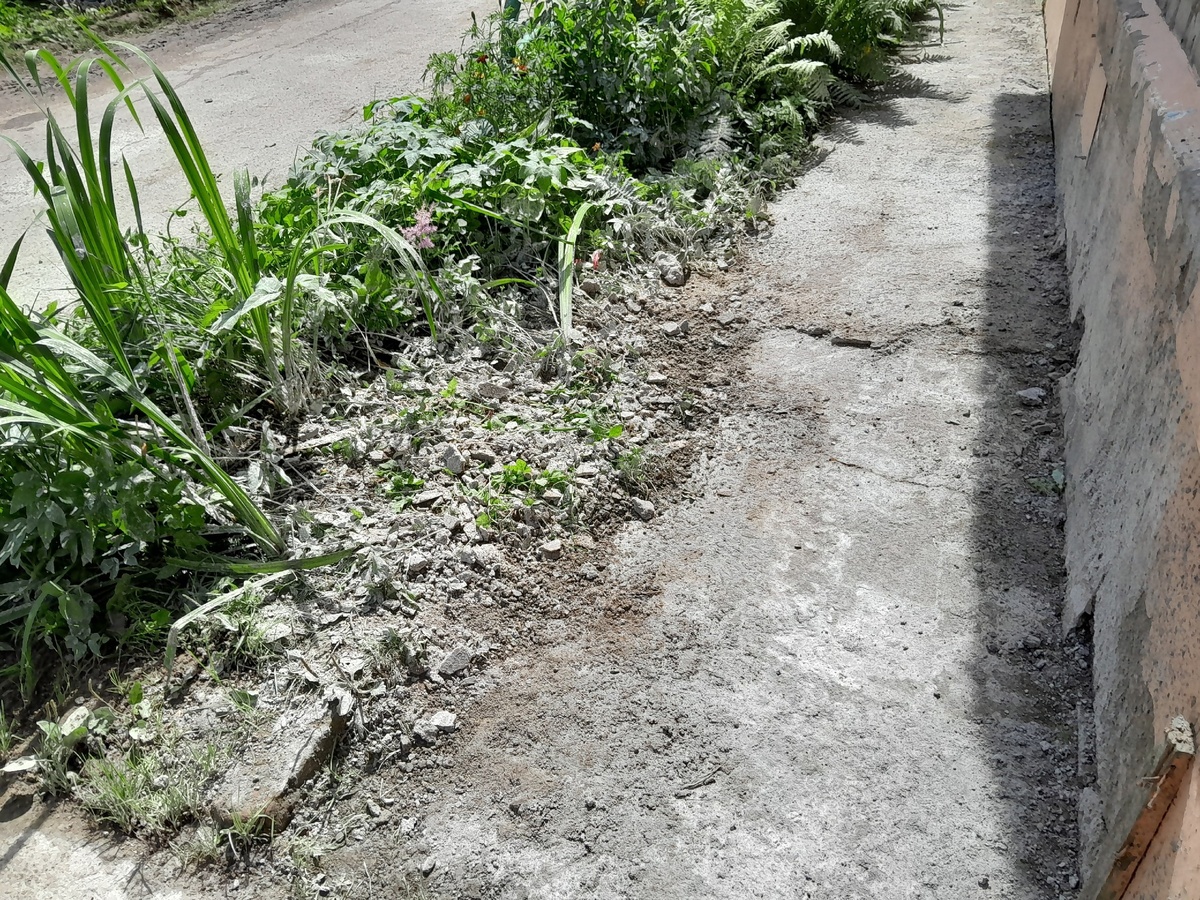 Вытоптанные цветы. Залитые бетоном стены, подъезд, клумбы. Это результат последствия "стихийного бедствия" (иначе никак не назвать) под названием "ремонт крыши" в доме №14 по ул. Центральная. Вопрос к контролирующей организации: кто уберет в подъезде? В соседнем доме проводился аналогичный ремонт, но все было сделано аккуратно.