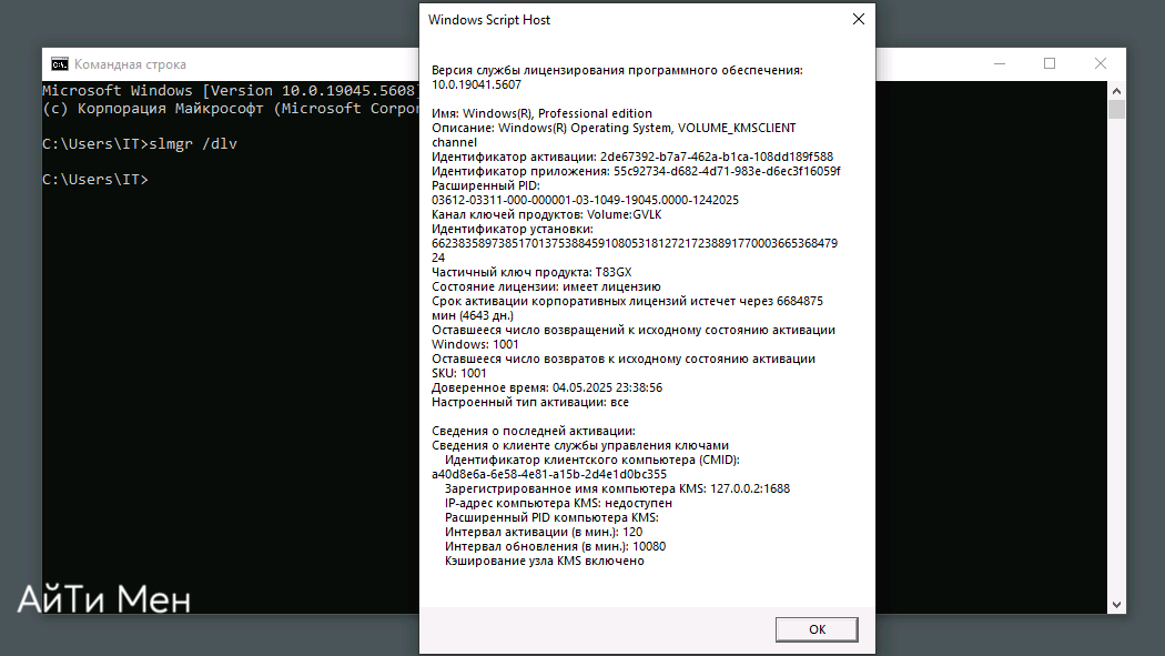 Пошаговая инструкция проверки работы KMS-эмуляции:
