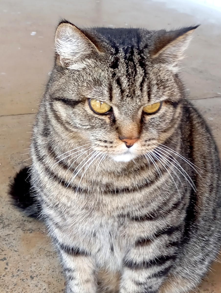 Я про него писала,появился котик у нас зимой. Часто мог залезть на террасу в поисках еды, раздербанить пакет с мусором.