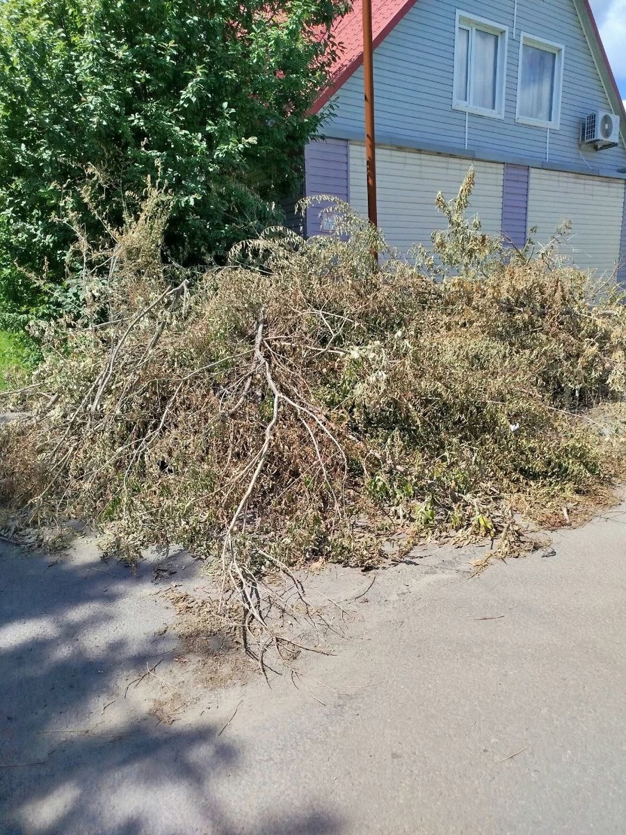 На самом перекрёстке ул. Тельмана и ул. Энгельса вот такая гора веток. Мусор этот остался ,после того как, срезали вдоль тротуара ветки. Всё свалили у дома и забыли вывезти. Ещё и мешает при выезде с улицы, перекрывает видимость . Да и пожароопасность ни кто не учитывает