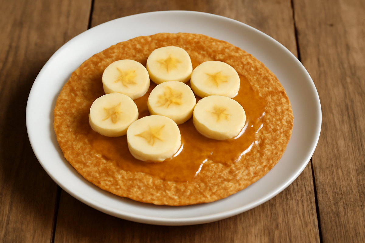 Это тонкий блинчик из смеси овсяных хлопьев, яйца и молока, который быстро готовится и легко адаптируется под разные вкусы. Добавление банана и мёда делает его не только вкуснее, но и полезнее, ведь бананы богаты калием и витаминами, а мёд — натуральным антиоксидантом и источником энергии.