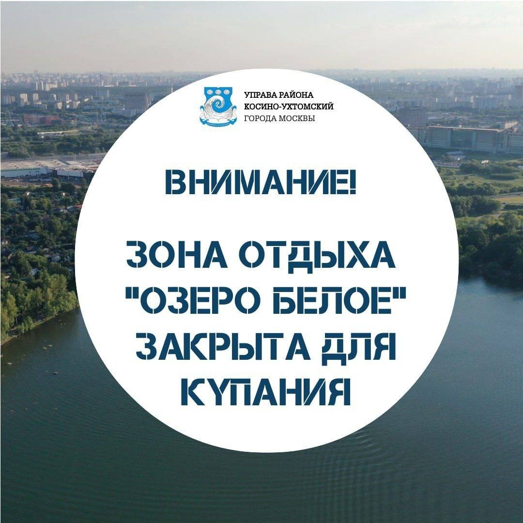 Управа района Косино-Ухтомский сообщает, что Белое озеро закрыто для купания