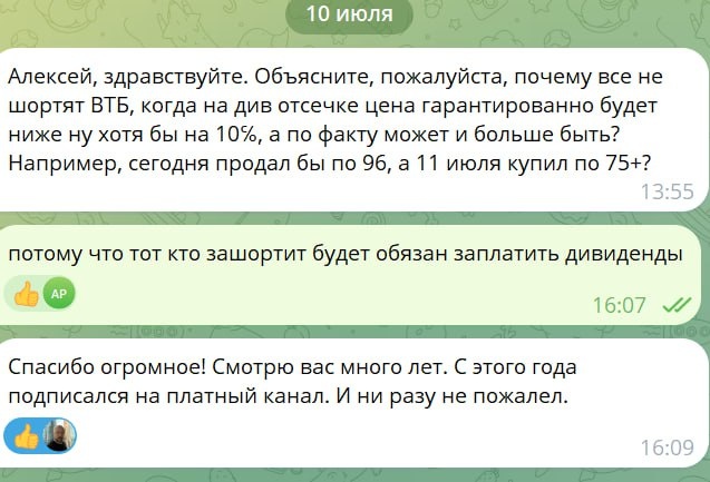 ‼️Для новичков. Вопрос очевидный, но не попадите те кто не знает элементарных вещей на рынке. Не надо шортить бумаги перед отсечками.