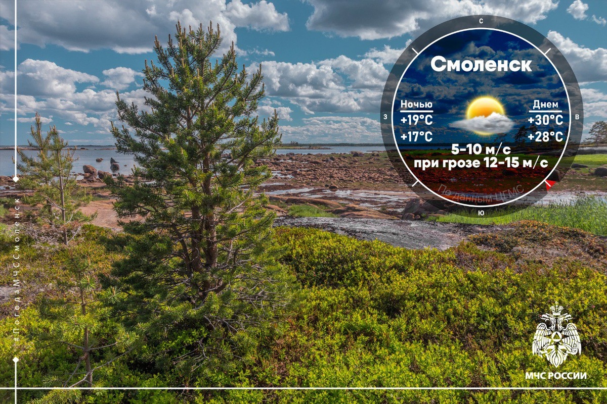 😆Погода на контрасте: жара усиливается, а грозы не уходят ⛅В пятницу, 11 июля, на погоду в регионе будет влиять тёплый сектор циклона. Его атмосферные фронты принесут с собой переменную облачность. Ночь пройдёт спокойно и тепло, без существенных осадков. Но уже ближе к вечеру в воздухе почувствуется напряжение — местами возможны кратковременные дожди, а где-то небо озарит грозовая вспышка. 🌡Днём жара будет по-настоящему летней: по области +27…+32 °C, в Смоленске чуть-чуть скромнее до +30 °C. Ночь подарит прохладу: от +15 до +20 °C, в областном центре — +17…+19 °C. 🌬Ветер юго-восточный, свежий, 5–10 м/с, но при грозе возможны резкие порывы до 12–15 м/с. Атмосферное давление составит 733 мм рт. ст., будет медленно, но уверенно расти. Чтобы пережить жару, МЧС России рекомендует: ✅избегай длительного пребывания на солнце; ✅носи светлую свободную одежду из натуральных тканей; ✅пей больше воды; ✅не оставляй детей и животных в машине. А год назад было 👉 так @ГУ МЧС России по Смоле