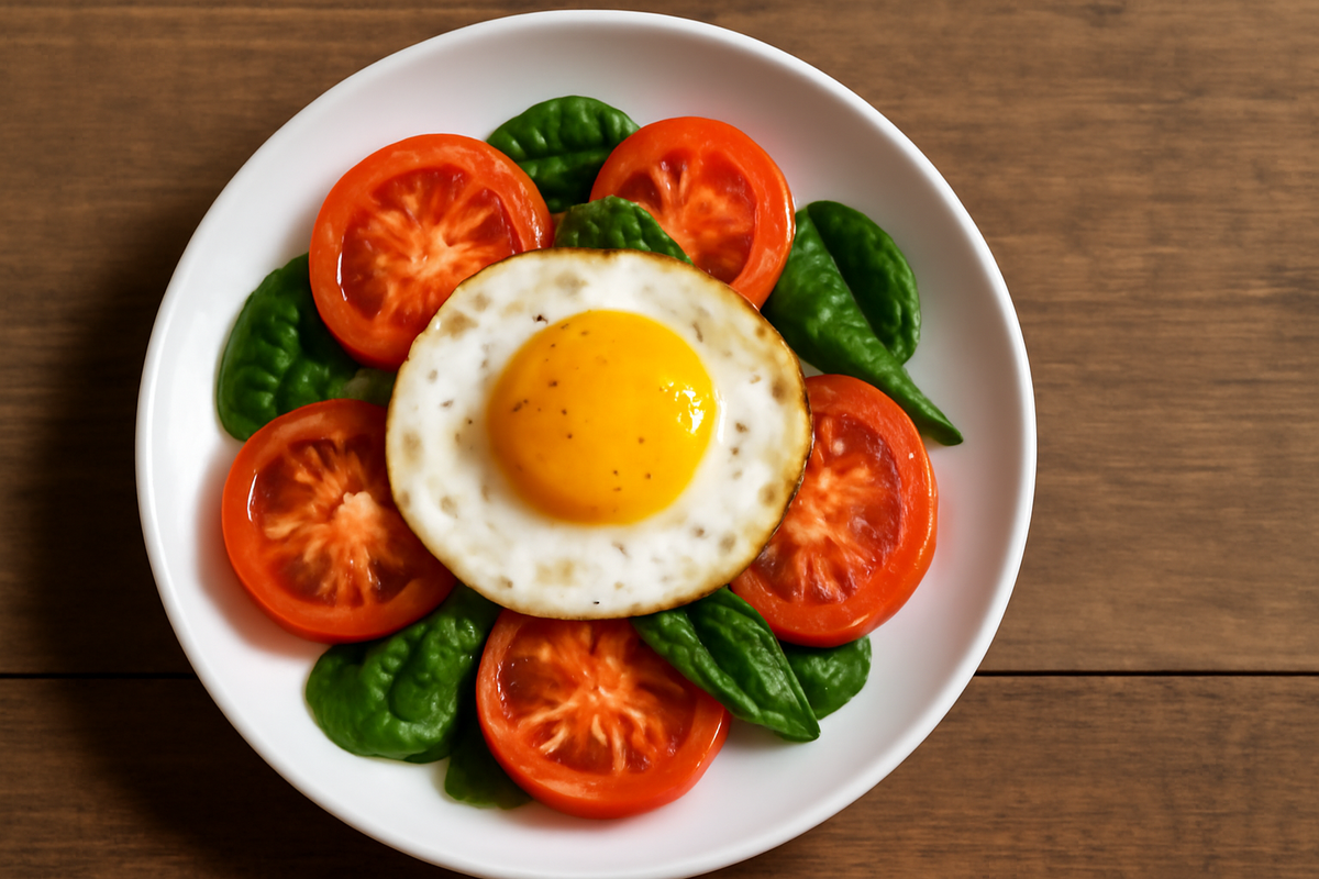 Яичница с помидорами и шпинатом — это не просто быстрый и полезный завтрак, а настоящее гастрономическое удовольствие, которое сочетает в себе свежесть овощей и насыщенность яиц. Это блюдо идеально подходит тем, кто хочет начать день с лёгкости, энергии и вкуса, не тратя много времени на готовку. В европейской кухне, особенно в России и странах СНГ, появилась более простая и быстрая версия — яичница с помидорами и шпинатом. Это блюдо сохраняет свежесть и яркость ингредиентов, но готовится на сковороде буквально за 10–15 минут, что делает его идеальным для повседневного завтрака. Ингредиенты (на 1 порцию): Приготовление: Яичница с помидорами и шпинатом — близкий родственник известной в арабской и североафриканской кухне шакшуки. Шакшука, что в переводе с арабского означает «смесь» или «мешанина», появилась в магрибских владениях Османской империи в XVI веке и представляет собой яйца, приготовленные в ароматном томатном соусе с пряностями. В разных странах шакшука адаптировалась под мест