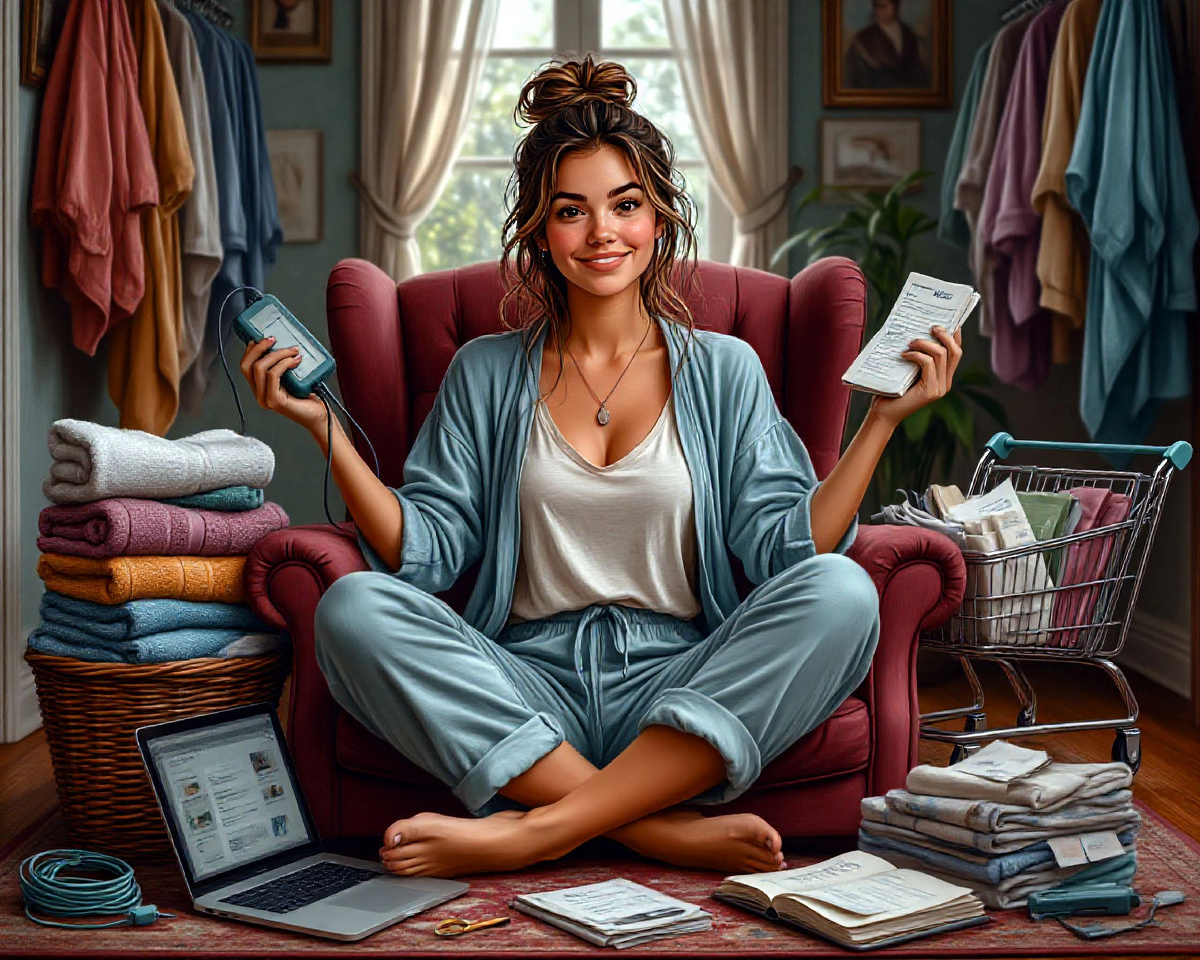 Каждый провод - загадка. Откуда он? От чего он? Почему я не могу его выбросить, хотя техника умерла в 2011-м? Зато когда я наконец сматываю два одинаковых шнура резинкой, чувствую: я снова управляю своей жизнью. 🧻 2. Переложить полотенца по цвету. Нет, это не тревога. Это хромотерапия через полку в шкафу. 🛒 3. Погулять по магазину с пустой тележкой.