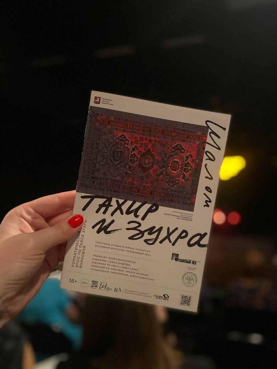 Спектакль"Тахир и Зухра" Театр Шалом Реж. Мурат Абулкатинов ⏰1час 20 мин. без антракта Размышление, которое хотелось написать сразу после просмотра: Милосердие - вот то слово, которое мы забыли в нашем жестоком мире. Очень часто люди, которые не похожи на нас, которые относятся к другой нации/религии вызывают у нас пренебрежение, может надменность, может быть злость, часто безразличие… но! точно не милосердие и сострадание. Мы порой просто забываем, что перед нами тоже человек 💔 В начале спектакля ребята-актеры представляются, говоря их имя, национальность и произносят речь, от которой сразу щиплет в носу ))) Итак, спектакль: Тахир, рожденный от папы с неба, и безумно любящей его матери, влюбляется в красавицу Зухру. Не страшны Тахиру не горы, не ветер, ни трудности, все готов он отдать за свою любимую, все готов он для нее сделать. Но суровый отец уже обещал отдать Зухру замуж за Мухтара, а обещание дороже золота... Кажется, что это кусочек восточной сказки из "1000 и 1 ночи", а е