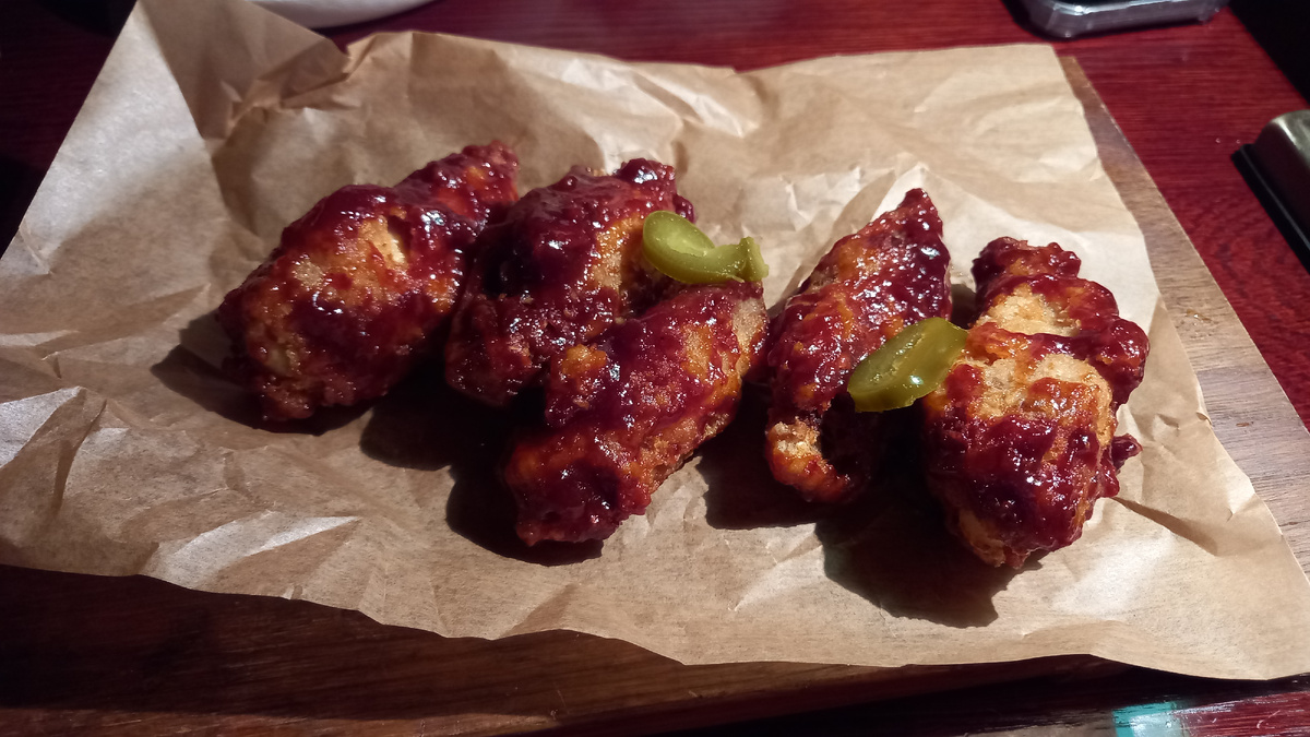 Сразу скажу, что заголовок просто привязан к определенному дню, когда в Санкт-Петербурге не работал мобильный интернет, а значит, и терминалы, а значит, и QR-код меню, в общем, тяжело. Но мы преодолели все трудности и смогли отобедать в пабе и попробовать пенного. Дизайн — лаконичный, но дорогой дизайн британского паба, уточню, что дорогого британского паба. Мебель дорогая, крепкая, новая. Отличный свет, не грузит глаза, а всё остальное видно отлично. Только дифирамбы дизайнеру. ЖАРЕНЫЕ КРЫЛЫШКИ (490 РУБ.) Сразу скажу, что крылышки прекрасны. Они обладают корейской хрустинкой, которая покрывает не все крылышко. Эта хрустинка сочетается с покупным BBQ соусом, а халапеньо прибавляет так необходимой остринки. Просто супер! НАЧОС С СОУСОМ САЛЬСА (350 РУБ.) Ну тут я сам виноват, я ожидал — я получил. Покупные начос из пакета с сальсой, которую мы сегодня в обзоре еще встретим. Ну в целом по хорошим для паба ценам мы получаем чипсы с домашней сальсой. Скажу только, что сальсы можно положить