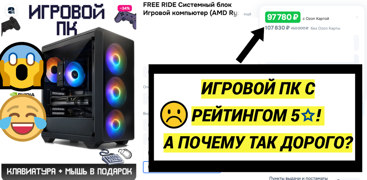 Господа, всем привет. Не так давно я выпускал статью с обзором на игровой ПК с Ozon с рейтингом 4.7 за 60 000 рублей и, кстати, он оказался очень даже сносным. Если интересно, ссылку прикрепил в конце статьи.