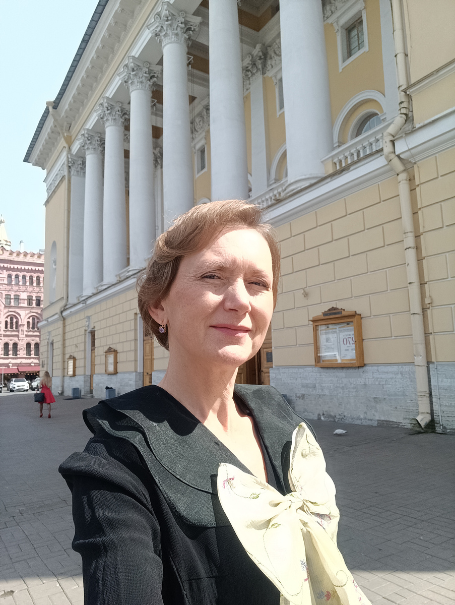 Это полнометражный фильм об известном композиторе, имя режиссёра также на слуху. Участвуя в подобных проектах, я ощущаю свою причастность к великому искусству! За несколько дней до того я ездила на примерку. Никогда еще мне так долго и скрупулезно не подбирали наряд. Померяли пять платьев, пока не нашли подходящее. Оно, конечно, побито молью и местами штопано, но сие не заметно в кадре, а общий вид довольно элегантный Часы смены очень комфортны – с 8 до 20, закончили на полчаса раньше. Съемки – не больше не меньше – в Александринском театре! Мне пока не доводилось его посетить. Без долгих часов ожидания не обошлось. Собрались к 8:00, к 11:30 нас всех нарядили, причесали и усадили на скамеечках у театра. Забавно, что напротив базировалась съемочная группа еще одного исторического проекта. Так что туристам у Екатерининского сада, и работникам РЖД и Газпрома было на что поглазеть. Мне понравилось, что в вызывном написали о необходимости взять перекус на время грима и костюма – чувствует