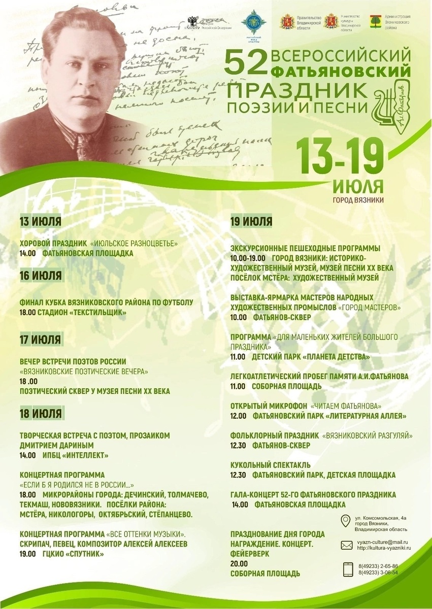 А вот и #Афиша празднования Фатьяновского праздника и Дня города Вязники подоспела
