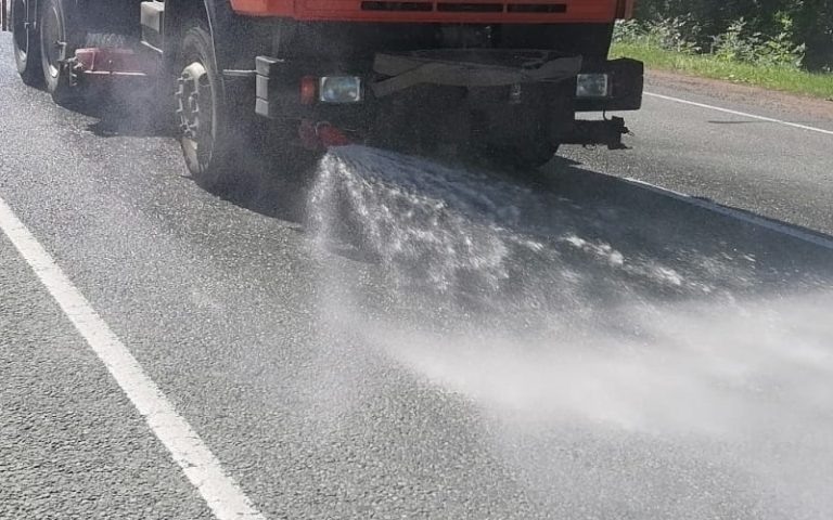 В Мордовии на федеральные трассы М5 «Урал» и Р-178 «Саранск – Сурское – Ульяновск» начали выезжать поливальные машины. Дорожное покрытие они обильно заливают водой, чтобы оно не деформировалось из-за аномальной жары.