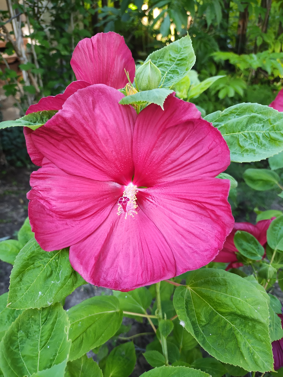 Всем доброго дня! Сегодня я хочу вам показать свой сад в июле. Какие цветы цветут в это время. Самый интересный и красивый цветок, это, конечно - Гибискус. Здесь, в этом городе, и штате, - это очень популярное растение. Растет практически в каждом дворе, можно сказать даже в диком виде, ибо этот кустарник очень живучий, неприхотливый и быстро легко размножается, оставляет свои семена везде и тут же возникает новый росток. Как сорняк. Но на самом деле, это очень красивый декоративный цветок, любит теплый южный климат. Существует много сортов Гибискуса. Есть древовидный, вырастает большой и раскидистый куст, с довольно толстым прочным стволом. Как невысокое дерево. А есть травянистые сорта, кусты до 1- 2 метров высотой, с очень крупными яркими выразительными цветами, разных оттенков. От жёлтого, оранжевого до алого, розового и бордового. До приезда в Америку, в 2000 году, я даже не знала как этот цветок выглядит. У нас, на днепропетровщине, он не растет. Знала только, что есть чай