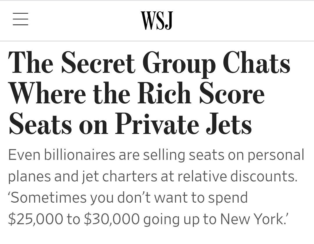 Американские миллиардеры начали продавать места в своих частных самолётах через секретные чаты.