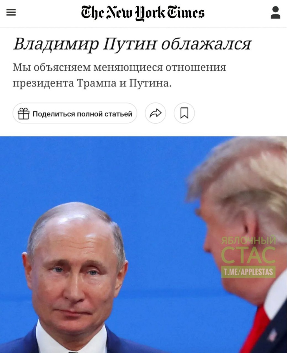 – Шеф, все пропало. Путин плюет на наши требования и угрозы, водит нас за нос. Что делать? – Напишите в Нью-Йорк Таймс, что он облажался. Вдруг сработает. Яблочный Стас